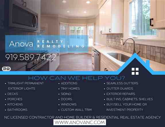 Anova Realty and Remodeling/Timlight Raleigh is your local solution for all things for your home! Locally owned, licensed, and insured, we're ready to help you buy, sell, remodel, add to, or install permanent programmable lights to your home!Product Images: